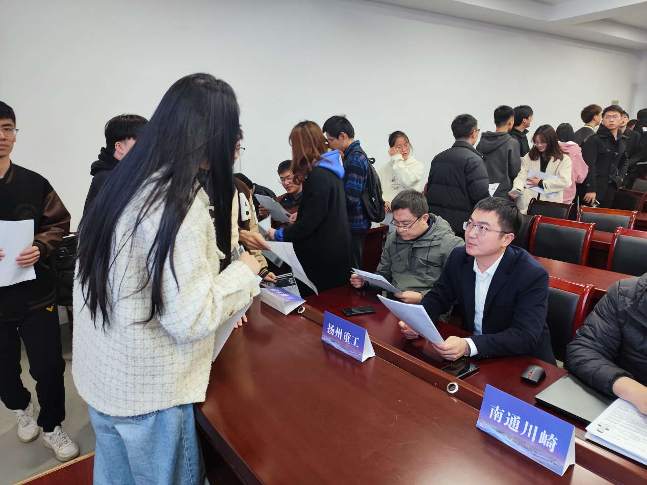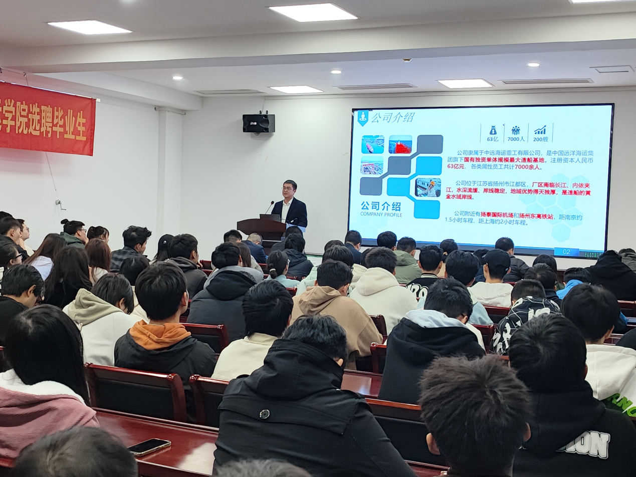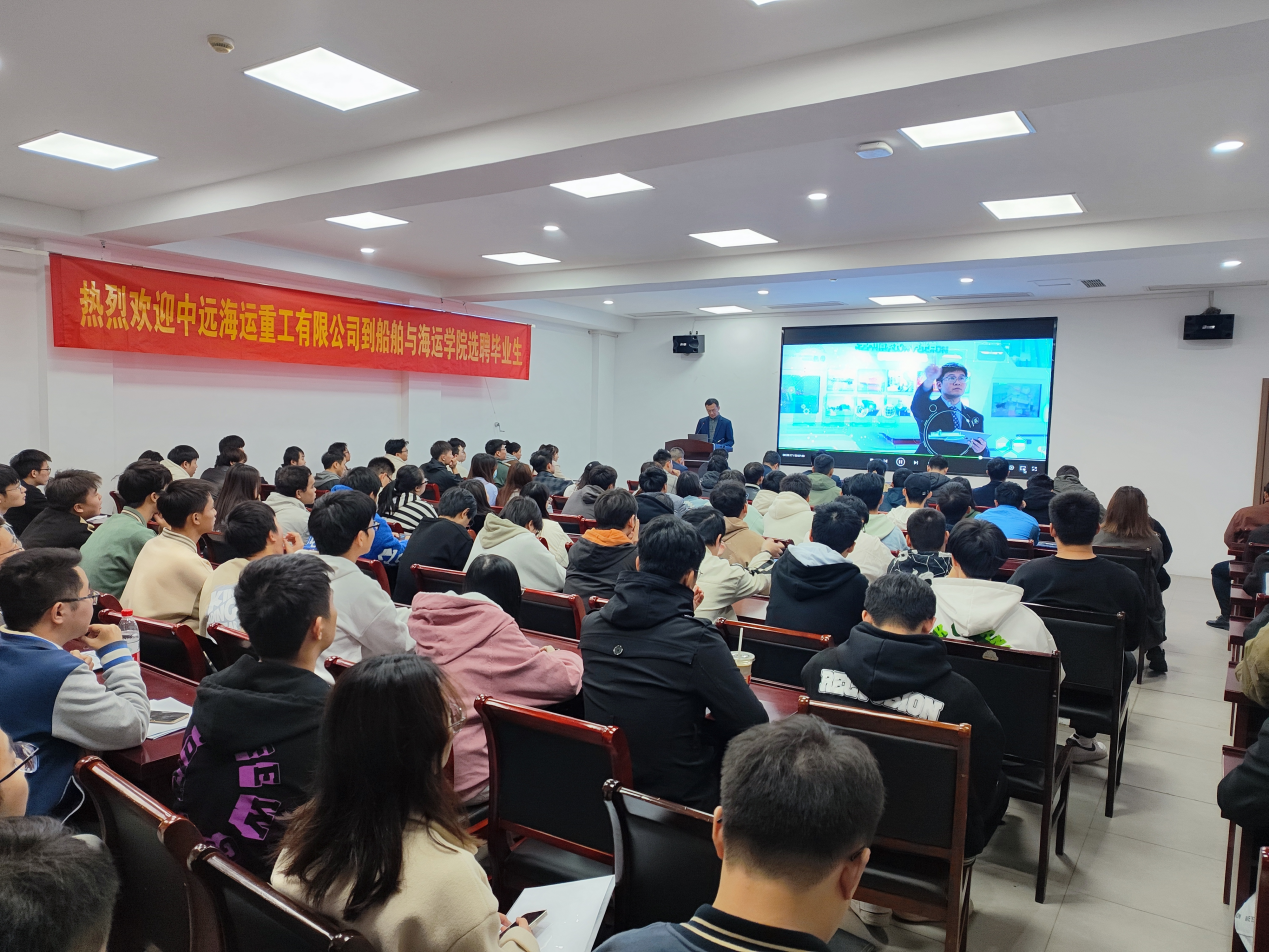 会后,中远海运重工集团在工科楼120举行了宣讲招聘会,现场座无虚席,参会学生与企业负责人积极互动。参会单位包括其旗下所属20余家企业,分布在上海、广州、江苏南京、辽宁大连、江苏南通、江苏扬州、浙江舟山、山东威海等地。从需求看,本次招聘会以海运为特色,参会单位中远海运重工是全球最大综合性航运集团。中远海运重工集团旗下科技制造产业集群,是集船舶和海工设计建造、修理改装与配套服务于一体的国有大型工业集团公司,质量优良;参会单位提供的岗位覆盖面广,涉及船海工程类、交通运输类、机械制造类、能源动力类、电气类、自动化类、数字化类、智能制造类、绿色发展类、人工智能类、材料科学类及其他相关专业。