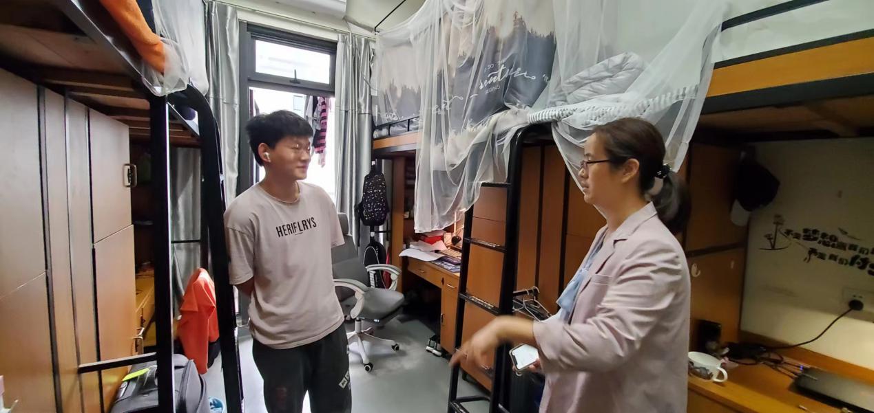 党委副书记何晔、学工办主任胡金保及全体辅导员老师到学生宿舍进行了走访。