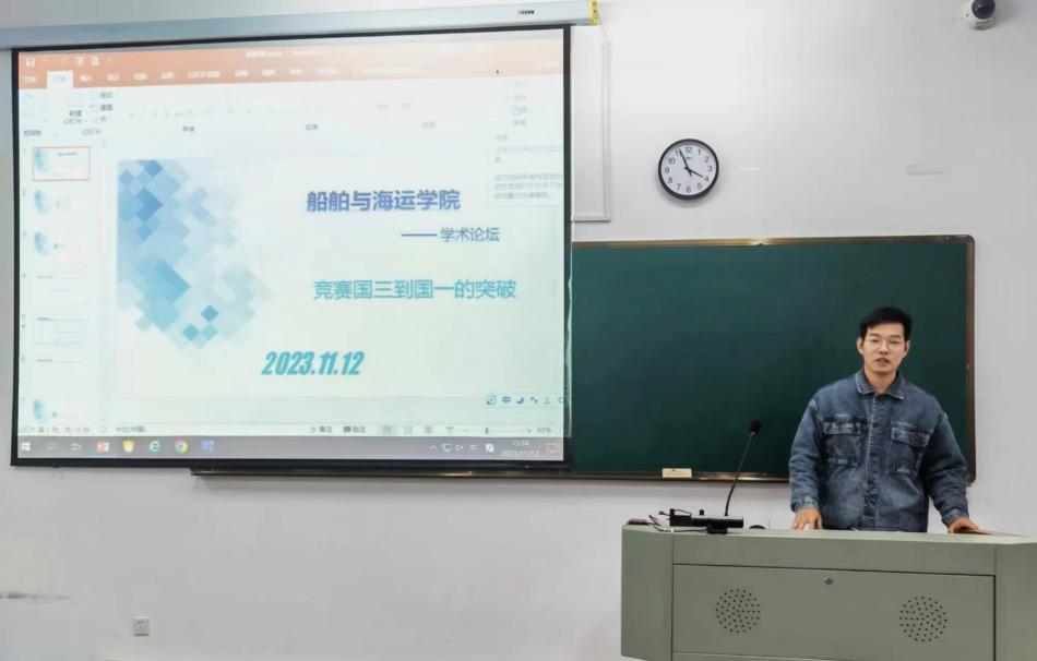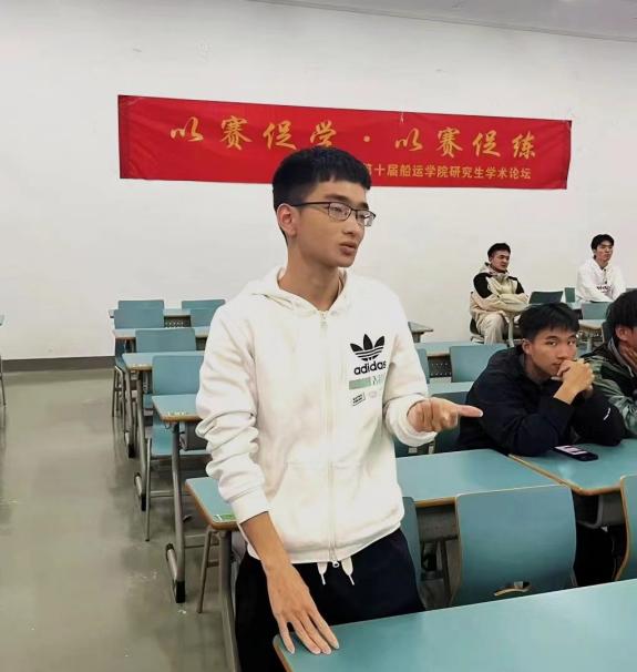 在新教学楼B411举办第十届船运学院研究生学术论坛,论坛由傅丽凤主持。本次学术论坛邀请到王加慧、徐彭涛和谢婉珊等三位有丰富竞赛经验并取得优异竞赛成绩的学长学姐,他们从“竞赛前准备、答辩准备和团队组建”等方面为同学们分享竞赛经验。