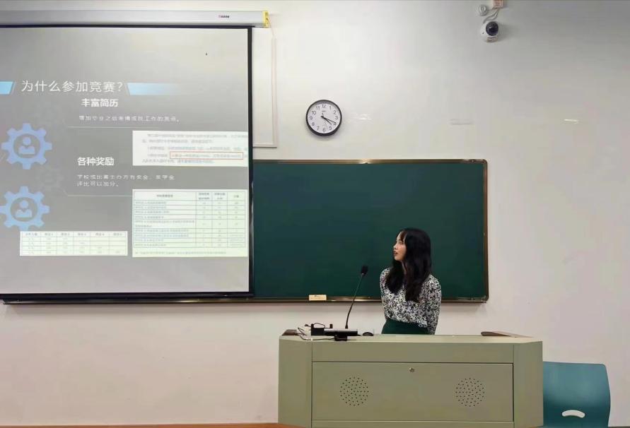 谢婉珊以“注重团队合作”为切入点分享竞赛经验。她强调了竞赛团队组建的重要性,队长要统筹规划每一个队员的任务,根据每个人的特点分配适合每个队员的任务,队员要服从队长的安排,成员之间要互相帮助,在遇到问题时要及时沟通。她提醒大家,准备过程中难免会失败,但是队员之间要互相鼓励,大胆试错,敢于面对失败。