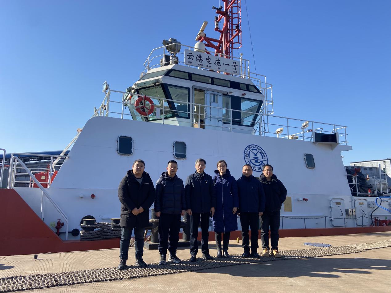 座谈会前,何晔一行在公司总经理张干的陪同下参观体验了国内首艘纯电拖轮“云港电拖一号”,张干总经理详细介绍了“云港电拖一号”,他说:“‘云港电拖一号’采用磷酸铁锂电池组作为动力源,实现大气污染物的零排放,填补了国内大功率绿色低碳港作拖轮的空白。2年多的营运表明,船舶性能优良,每年可减排约900吨碳氧化物,相当于400多辆小汽车的减排量,同时运营成本与常规拖轮相比大幅降低,其显著的环保效益、经济效益、社会效益获得了各方的高度评价。”