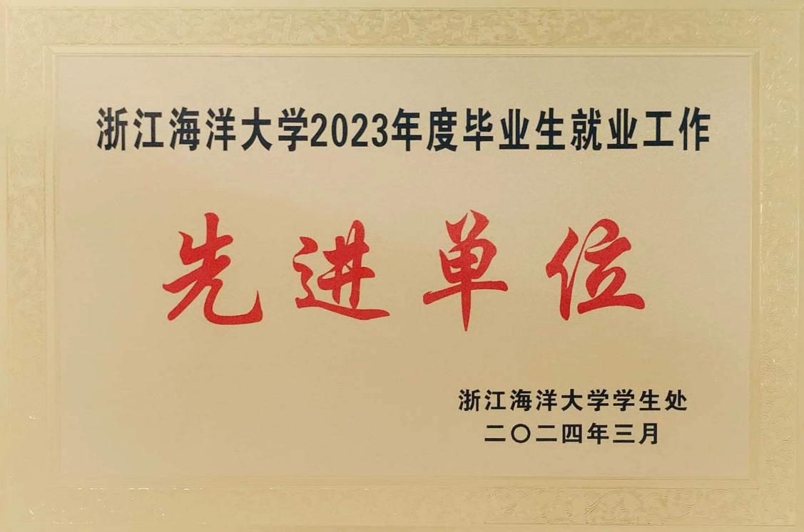 荣获2023年毕业生就业工作先进单位,郑海林、施骞、胡金保荣获2023年度就业工作先进个人。