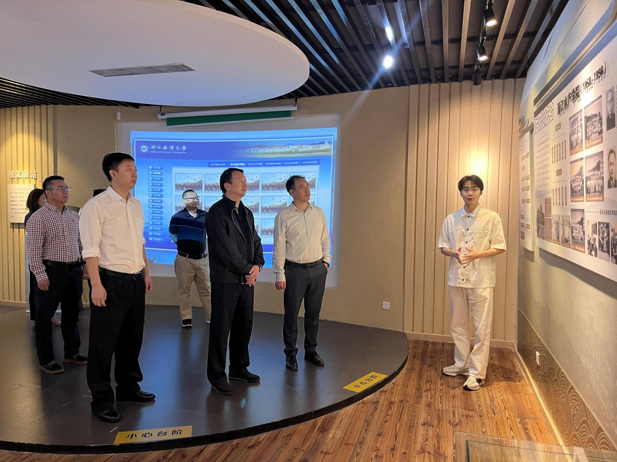 章伟彬一行先后参观了学校图书馆、校史馆、国家海洋设施养殖工程技术研究中心、海洋新质生产力展示馆,并在伊莉讨论区
